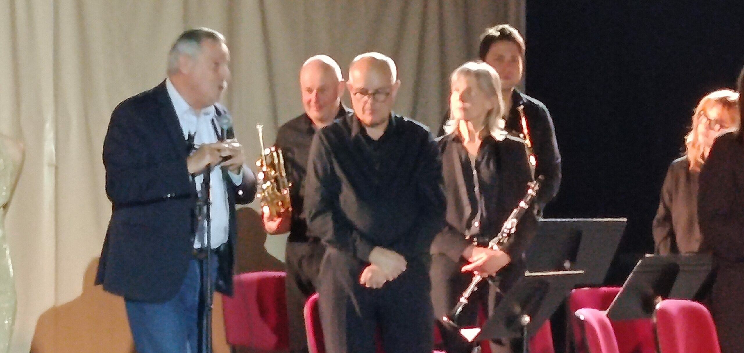 Après le deuxième morceau, le directeur prend la parole pour évoquer Anne Frank et l’histoire qu’elle a laissée au monde. Le sens du programme se révèle alors progressivement préparant le public à découvrir l’oeuvre phare de la soirée : Une story d’Anne Frank jouée par l’harmonie, et mise en scène par Valentin’s Company. A cette occasion, Xavier Lallart a rendu un hommage à Sophie, musicienne et ancienne adjointe , qui avait planté un marronnier dans le parc de la mairie, en l’hommage d’Anne Frank.
